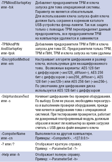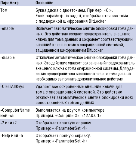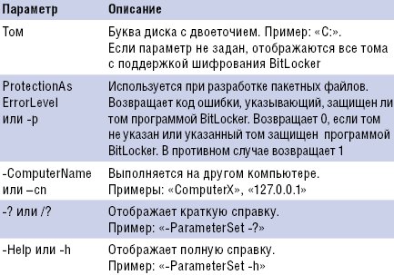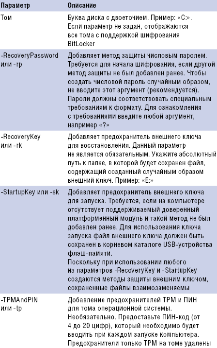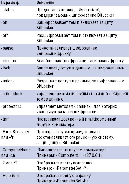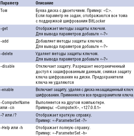 Полное описание параметров сценария приведено во врезке «Описание параметров сценария manage-bde.wsf».