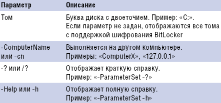 Описание параметров сценария manage-bde.wsf