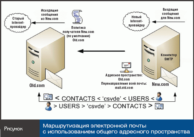 Рисунок. Маршрутизация электронной почты с использованием общего адресного пространства
