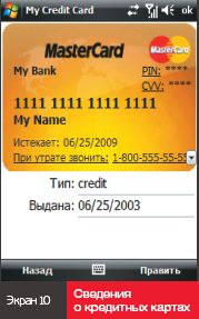 Аналогично вы можете задать данные своих платежных карт (экран 10).