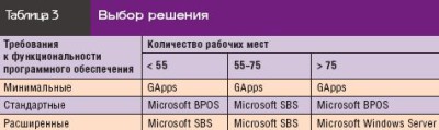 Окончательные итоги исследования позволяют определить, какой продукт наиболее выгодно использовать в зависимости от требований к функциональным возможностям и количества сотрудников компании. Продукт можно выбрать с помощью таблицы 3.