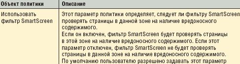 В таблице 1 приведены сведения о параметрах безопасности, относящихся к технологии SmartScreen в Internet Explorer 8.