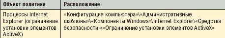 Перед использованием нового элемента ActiveX, Internet Explorer сообщает об этом пользователю на панели информации. Далее пользователь может разрешить либо запретить доступ к каждому отдельному ActiveX. Данным режимом можно управлять с помощью групповой политики, описание дано в таблице 4.