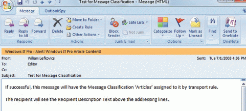 Set-MessageClassification-Identity Articles -RecipientDescription "Alert! Windows IT Pro Article Content!"