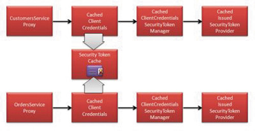 this.TokenCache = new SecurityTokenCache(); customersProxy = new CustomersServiceProxy(); ClientCredentials oldCreds = customersProxy.Endpoint. Behaviors.Remove(); CachedClientCredentials newCreds = new CachedClientCredentials (this.TokenCache, oldCreds); customersProxy.Endpoint.Behaviors.Add(newCreds); customersProxy.ClientCredentials.UserName.UserName = this.Username; customersProxy.ClientCredentials.UserName.Password = this.Password; ordersProxy = new OrdersServiceProxy(); ClientCredentials oldCreds = ordersProxy.Endpoint.Behaviors. Remove (); newCreds = new CachedClientCredentials(this.TokenCache, oldCreds); ordersProxy.Endpoint.Behaviors.Add(newCreds); ordersProxy.ClientCredentials.UserName.UserName = this.Username; ordersProxy.ClientCredentials.UserName.Password = this.Password;
