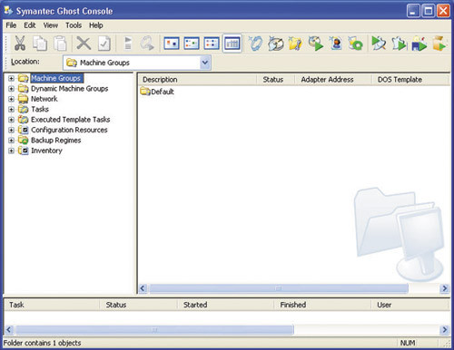 Для создания главного образа необходимо в первую очередь указать серверу Ghost место хранения образа (в предыдущих версиях это называлось «определением образа» — image definition). Затем нужно подготовить задачу Capture new image, указав программе компьютер и диск или раздел, для которых предстоит создать образ. Администратор управляет всем процессом со своего рабочего места; физическое присутствие возле компьютера, для которого выполняется построение образа, не требуется.
