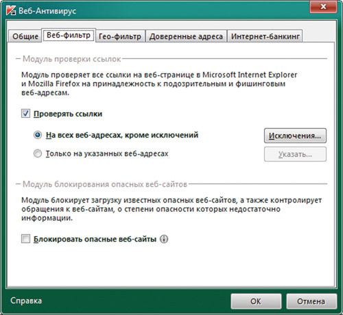 Модуль проверки ссылок предназначен для информирования о ссылках на подозрительные и опасные веб-сайты.