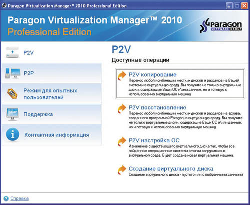 Компания Paragon Software выпустила обновленную версию Virtualization Manager. Программный продукт, предоставляющий пользователям все возможности для виртуализации и миграции рабочих станций и серверов, представлен в двух версиях: Professional и Corporate. Virtualization Manager представляет собой программное решение, объединяющее в одном пакете сразу несколько технологий. Прежде всего, продукт обладает широким набором функций для работы с жесткими дисками, оставшимся в наследство от флагманского решения компании — Paragon Partition Manager. Другая важная составляющая Virtualization Manager — разнообразные технологии для обеспечения миграции и виртуализации, которые были разработаны и внедрены российскими специалистами Paragon Software в последние годы. В частности, технология P2V, лежащая в основе Virtualization Manager, которая позволяет виртуализировать физические машины (рабочие станции и серверы). Это как классическая миграция в виртуальную среду (P2V Copy), так и перенос программного обеспечения из резервной копии системного диска в виртуальную машину (P2V Restore). Другая технология, входящая в Virtualization Manager, обеспечивает адаптацию старой операционной системы к новому оборудованию (P2P) при переносе операционной системы на новый компьютер.
