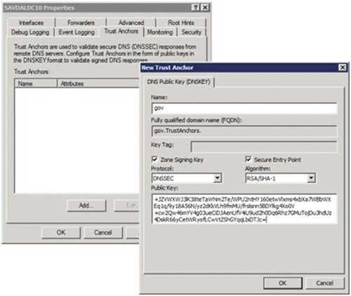 С помощью процесса, названного DNSEC Lookaside Validation (DLV), можно настроить отношение доверия между клиентами DNS и открытыми ключами. В Интернете существуют хранилища, в которые зоны с поддержкой технологии DNSSEC могут загружать открытые ключи. После этого ключи могут использоваться клиентами. Считается, что данные хранилища гарантируют легитимность находящихся в них ключей — точно так же мы доверяем центру VeriSign в процессе проверки компаний и выдачи им сертификатов с подписью кода или сертификатов SSL. Организация может скачать содержимое хранилища, и средствами Active Directory (AD) реплицировать информацию DNSSEC между всеми серверами DNS (механизм DLV не поддерживается платформой Server 2008 R2).