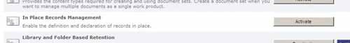 Чтобы воспользоваться функцией In-Place Records Management, которую предлагает SharePoint, требуется сначала активировать ее для коллекции сайта, как показано на экране 2. Если у вас есть коллекция сайта с заданными настройками в среде «песочницы», откройте Site Actions и активируйте функцию. Либо наоборот: сначала создайте коллекцию сайта (например, Team Collaboration), а затем активируйте функцию.