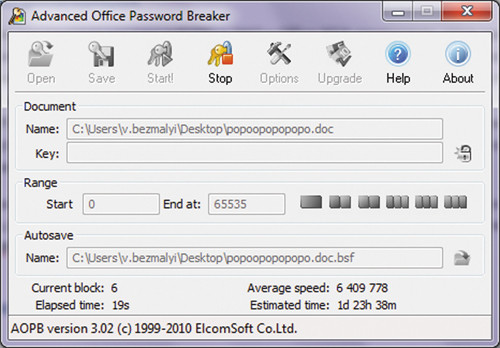 Удаление парольной защиты возможно с файлов, которые сохранены в формате .doc и .xls. То есть форматы файлов Word 2007–2010 и Excel 2007–2010 не поддерживаются. Главное окно Advanced Office Password Breaker показано на экране 6.