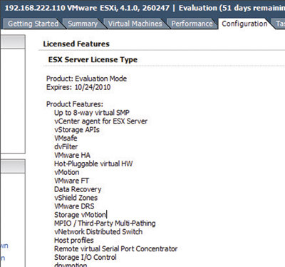 . На экране 1 показан пример того, что можно увидеть, если щелкнуть на левой панели узла ESX и перейти на вкладку Configuration, а затем пройти по ссылке для показа лицензируемых компонентов. Обратите внимание, что VMware определяет лицензируемые компоненты для VMware HA и VMware DRS для каждого узла в отдельности. Таким образом, в зависимости от особенностей приобретенных лицензий, необходимые функции могут присутствовать лишь на части узлов компании.