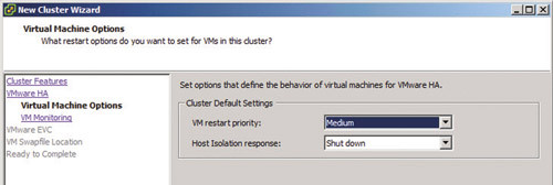 Как и в случае с перезапуском виртуальной машины, этот параметр определяет поведение по умолчанию всех виртуальных машин в кластере. Поведение отдельных машин можно настроить в свойствах кластера после его создания.