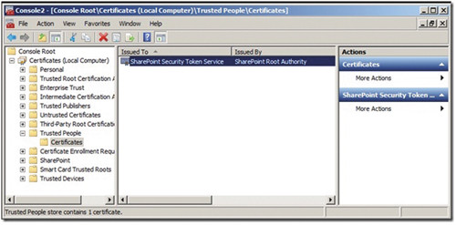 3. Импортируйте файл, который создали на шаге 2, в хранилище сертификата Trusted People на сервере FAST Search (экран 4).