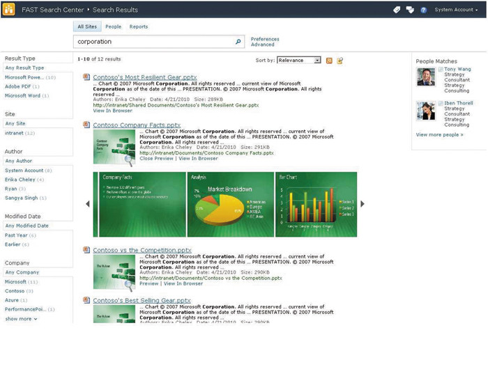 . Перечислим основные преимущества FAST Search Server 2010 для SharePoint: